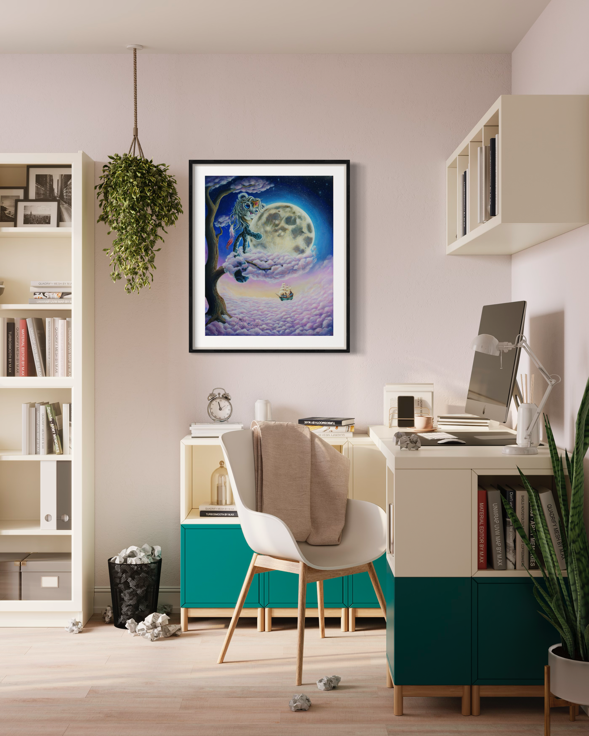 This artwork is a signed open-edition fine art print of my original acrylic painting. The print is available in a variety of standard frame sizes in the drop-down menu. Frame and mat not included.