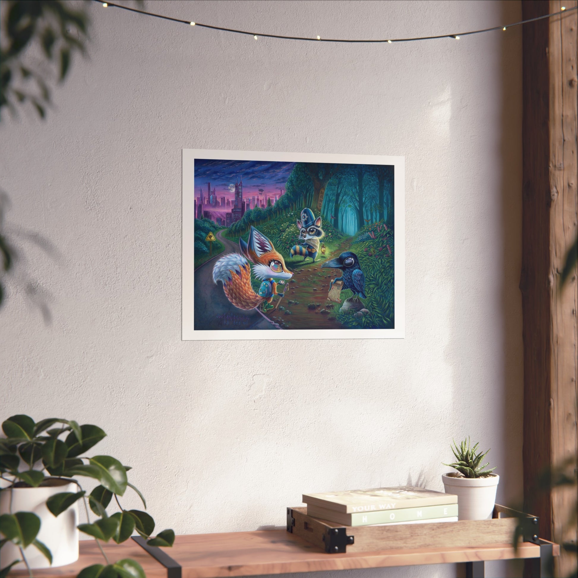 Transform your space into a haven of wonder with Nova's captivating journey. This brave fox chooses to walk her own path, full of mystery, this adventure reveals a crow and a raccoon as unlikely friends and guides.